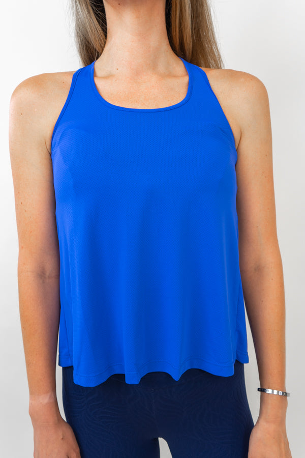 This Sporty chic tank is sure a show stopper. With a split down the middle and a fun tied back we've combined a flexible, quick drying material that will have you turning heads at the gym or on the street.